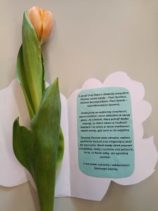 7 marca w przeddzień Międzynarodowego Dnia Kobiet przedstawiciele Samorządu Uczniowskiego pod opiekuńczym okiem Pani Iwony Wiśniowskiej zaskoczyli wszystkie nauczycielki/pracownice naszej szkoły składając im życzenia z tej okazji oraz wręczając tradycyjną laurkę wraz symbolicznym kwiatkiem.